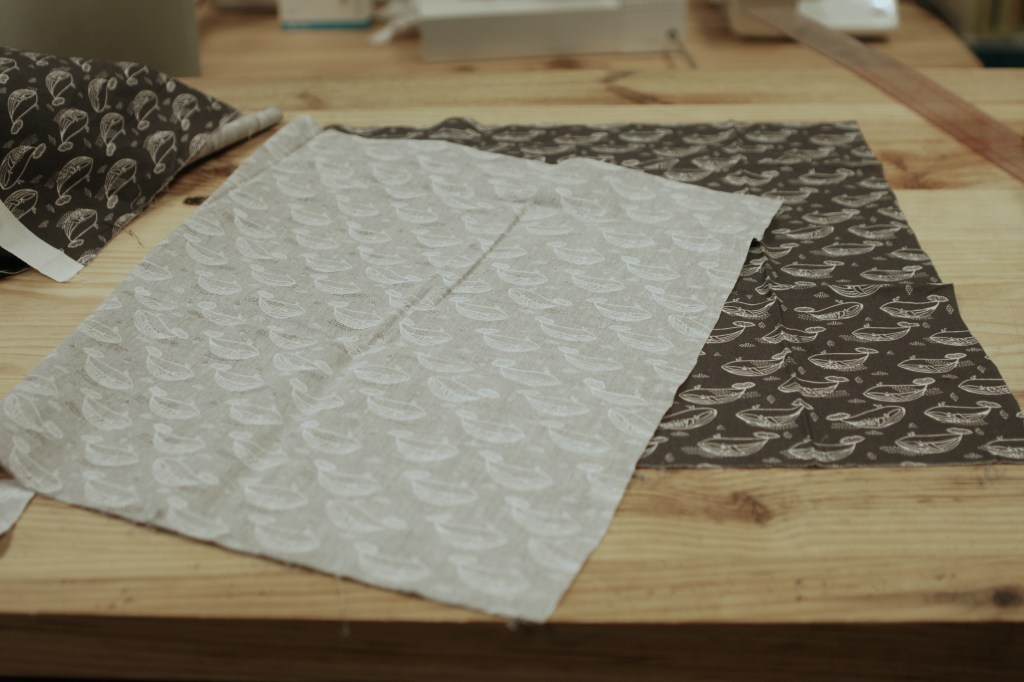 Pour les fans du Patchwork, placer votre second morceau dessus, épinglez le si vous le souhaitez, et découpez le surplus. Vous avez deux pièces parfaites en mesures!
