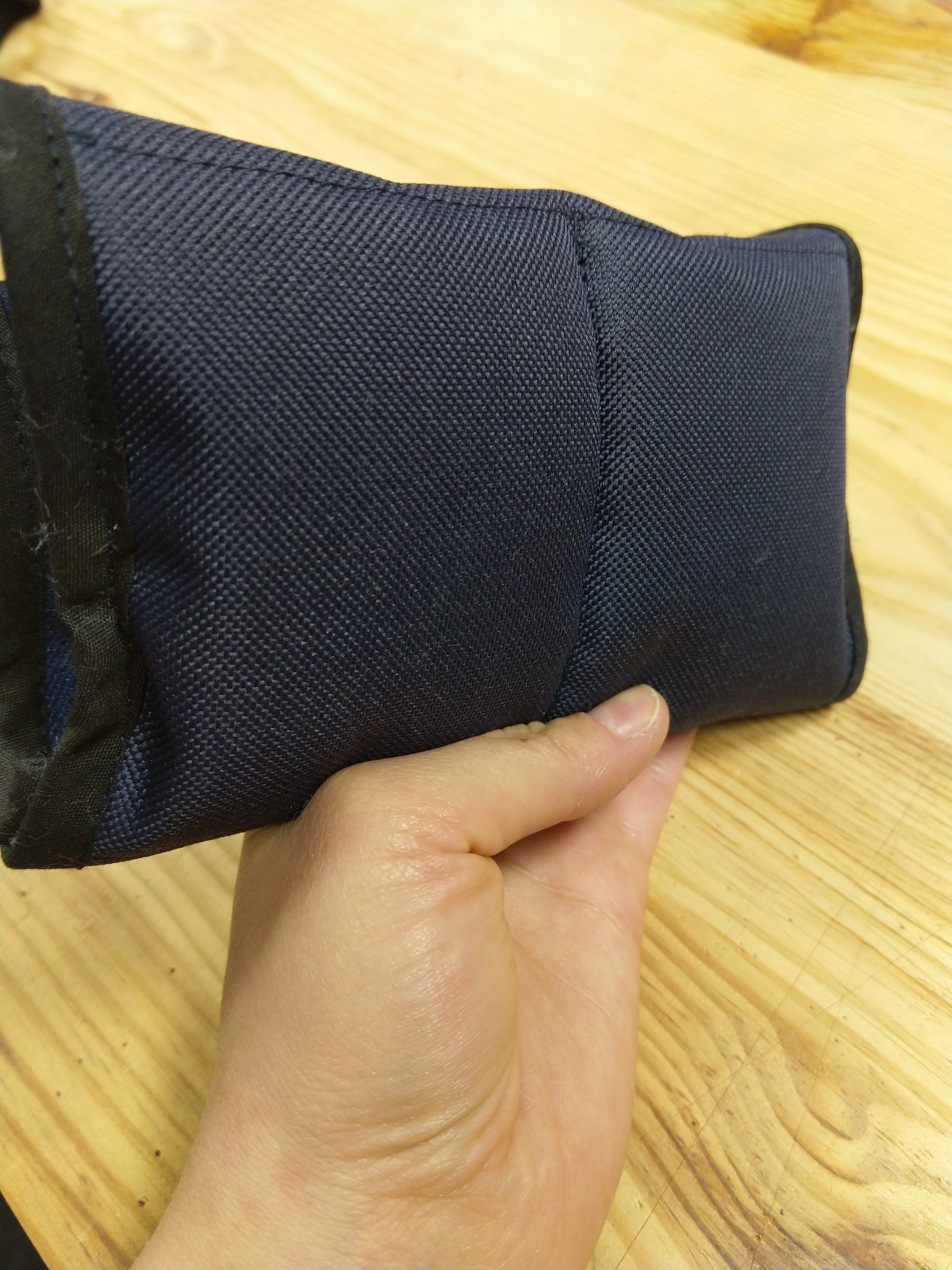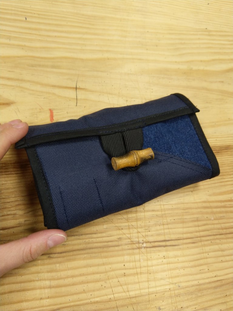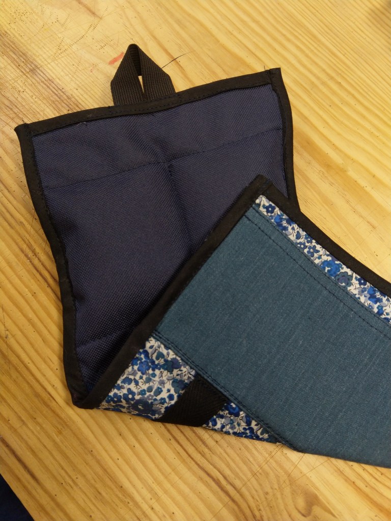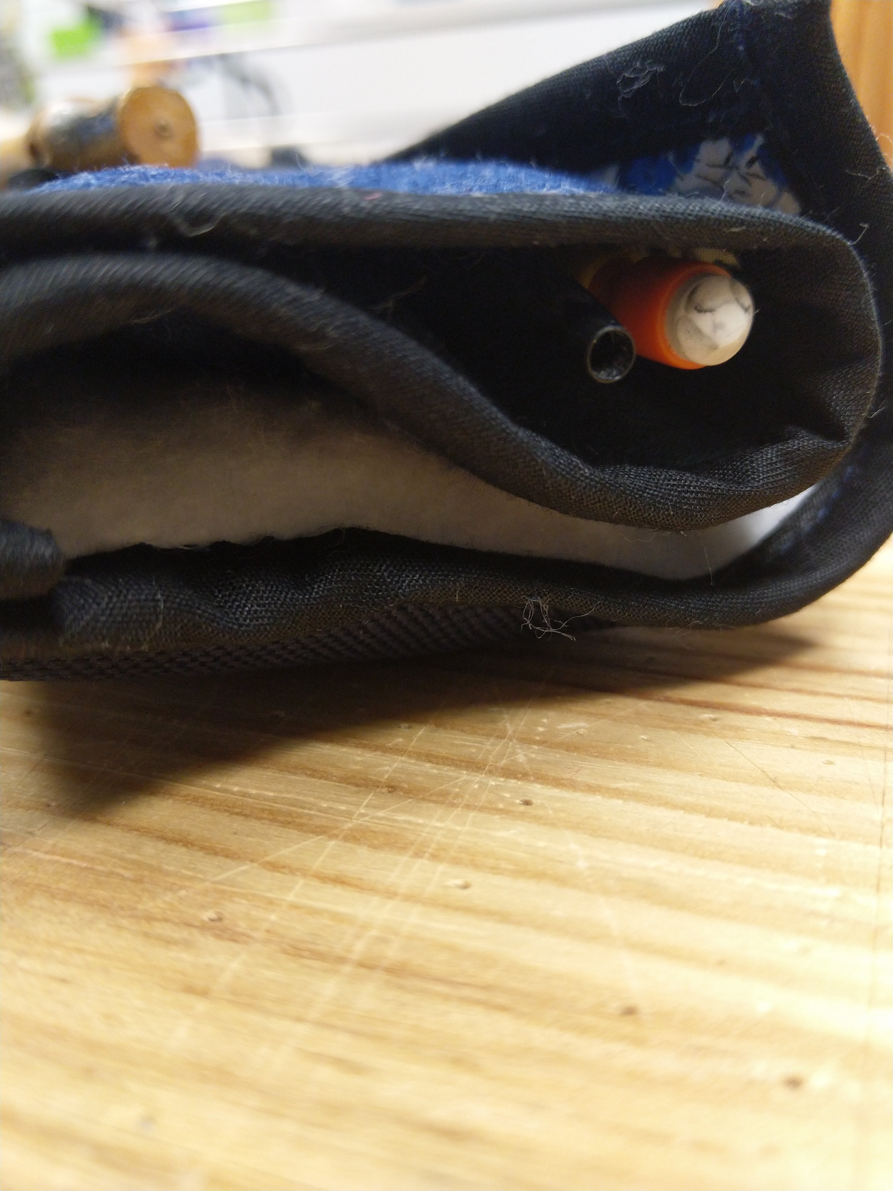 Je préfère avoir une pochette solide et waterplouf (on ne sait jamais, dans notre sac, une bouteille peut tellement facilement s’ouvrir…) c’est pourquoi j’ai rajouté une partie en nylon imperméable sur la partie extérieure de ma pochette. Vous n’êtes pas obligé(e)s de le faire, mais si vous avez l’habitude d’avoir deux mains gauches (ou droites, ça dépend) je vous le conseille!