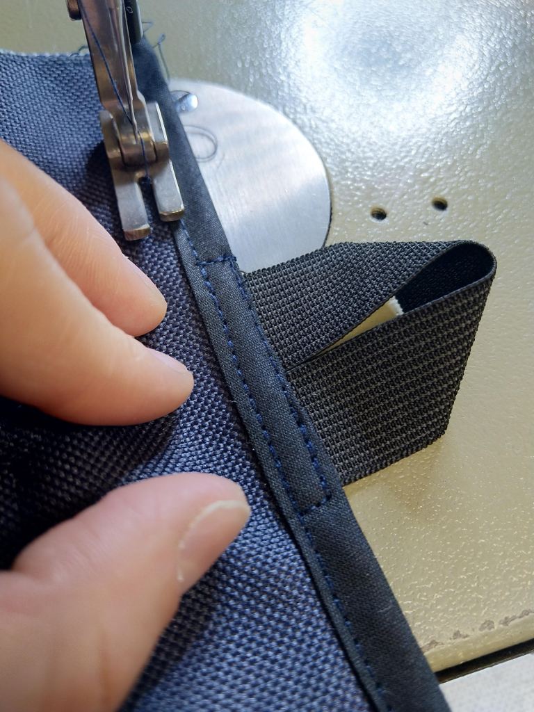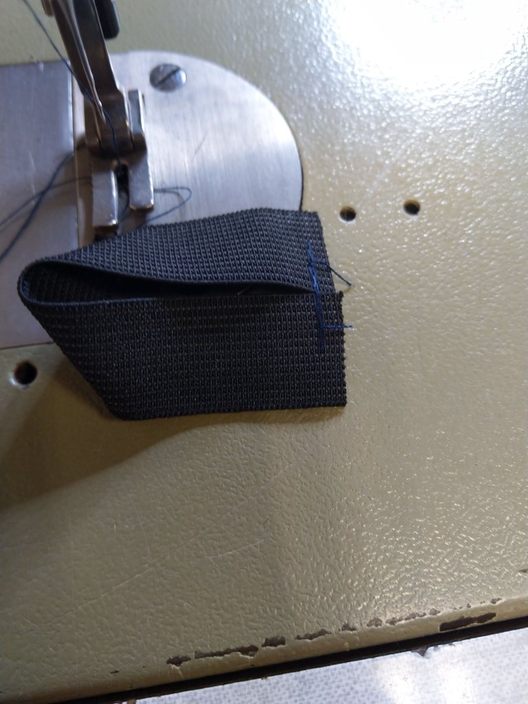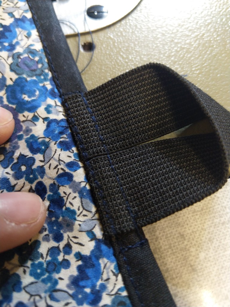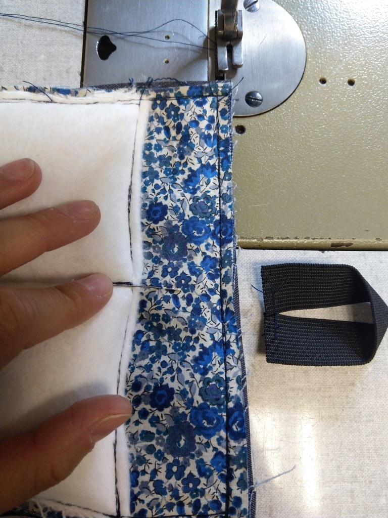 Vous placez ce petit morceau d’élastique à 1.5cm du « pique-aiguilles » et à 1cm du bord.