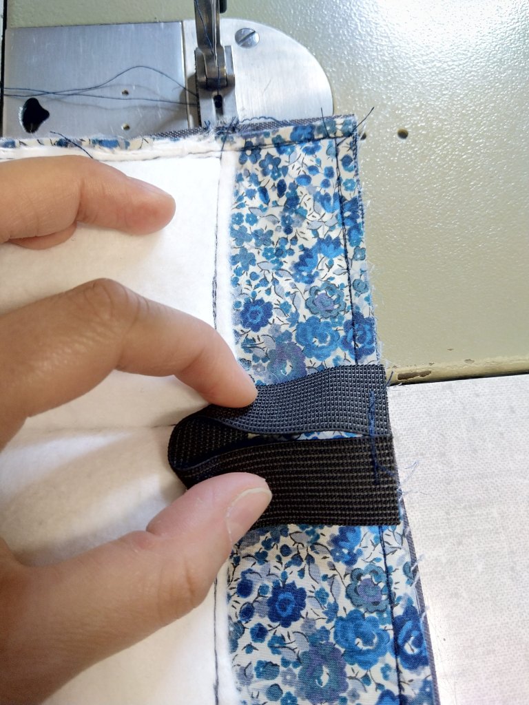 Tout d’abord, marquer le milieu sur la pochette et prenez votre passant élastique que vous placez comme sur la photo 2.