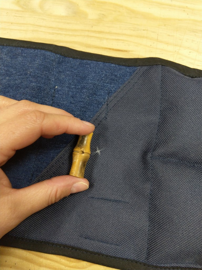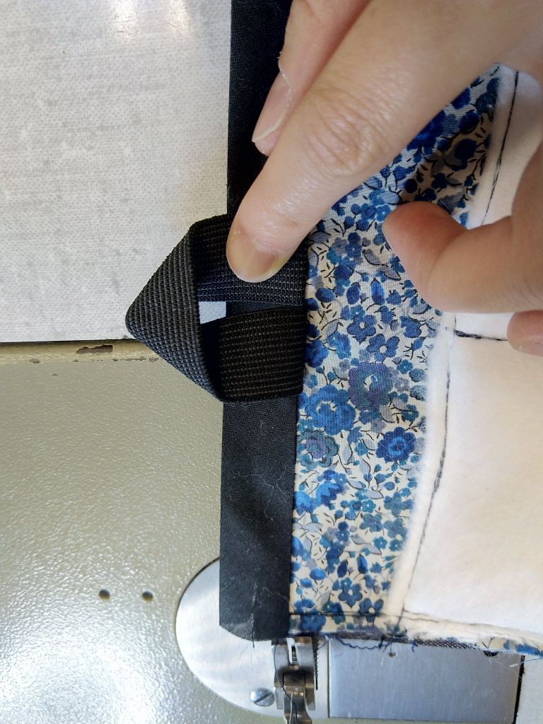 Afin de bien maintenir le passant, faite un petit renfort en piquant une forme de rectangle tout autour comme ci-dessous.