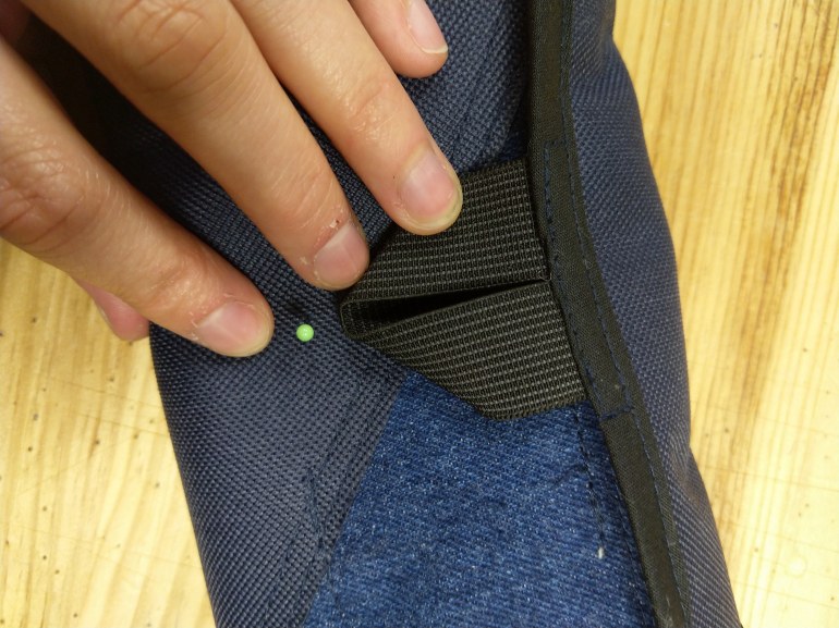 Passons maintenant à la petite sangle. Celle-ci servira comme support pour attacher vos stylos et crayons, pour celles et ceux qui veulent noter, dessiner ou tracer quelque chose ;). Et puis, on a toujours besoin d’un stylo sur soi!