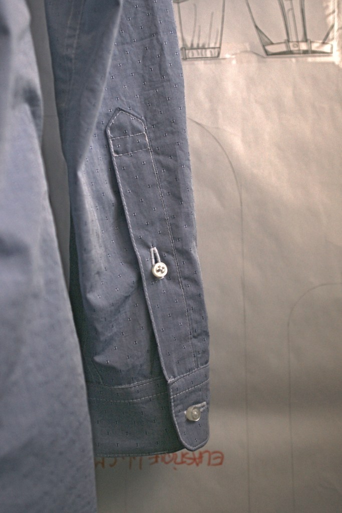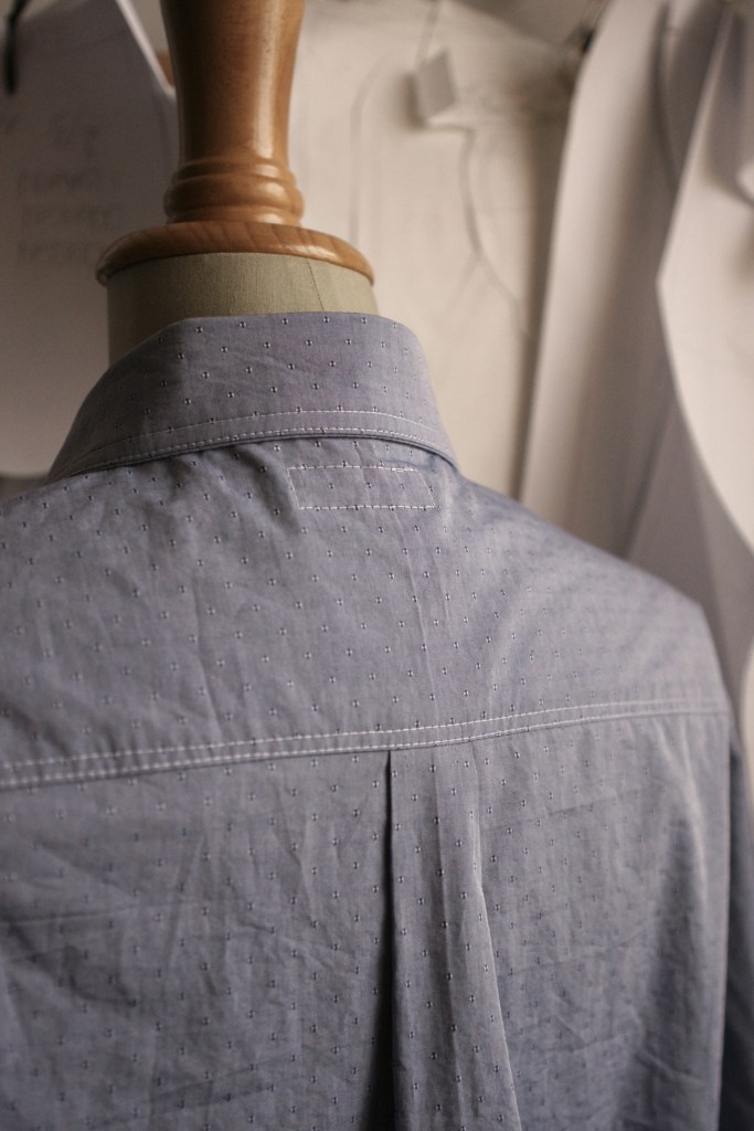 Quelques détails du poignet: une patte solide avec son petit bouton. Et bien sûr, le milieu dos accompagné d’un empiècement, et d’un beau pli plat donnant une certaine aisance et souplesse à ces chemises.