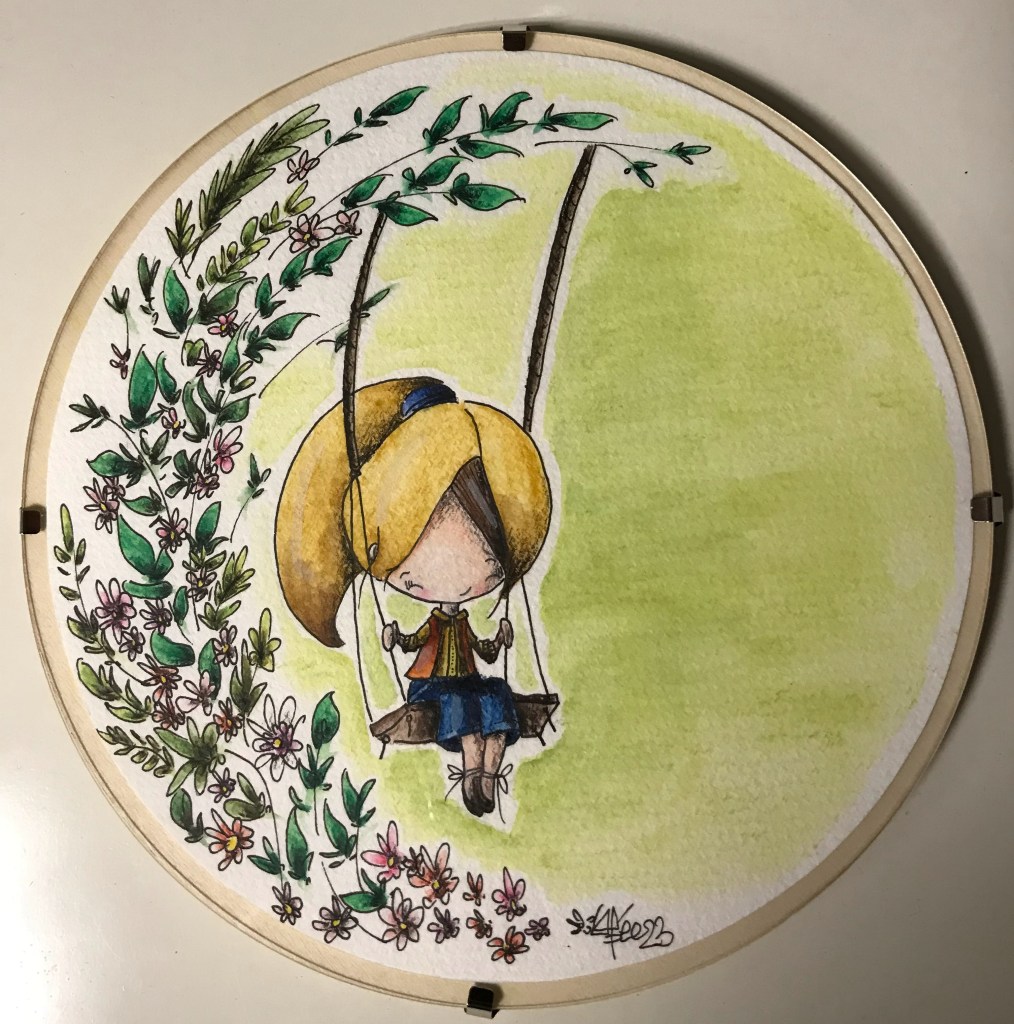 Aquarelle réalisée avec crayons aquarellables CARAN D’ACHE, pinceau PENTEL sur papier aquarelle 300g/m2