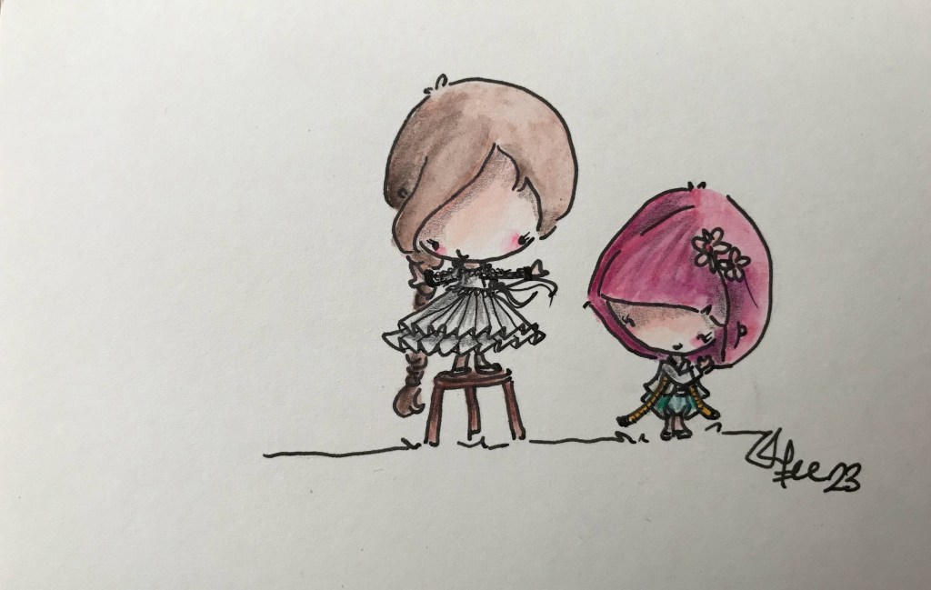 Aquarelle réalisée avec crayons aquarellables CARAN D’ACHE, pinceau PENTEL sur papier bristol EXACOMPTA